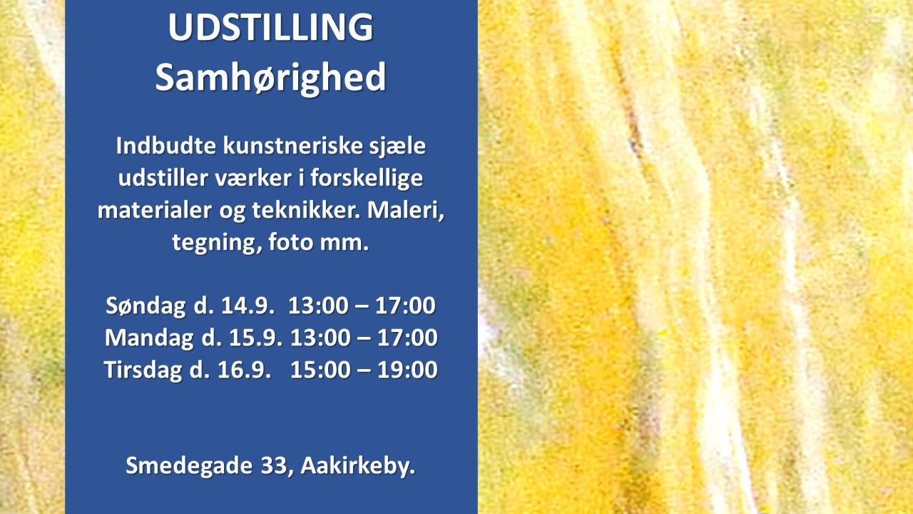 Sted: AakirkebyKategorier:KunstDage:14. september15. september -